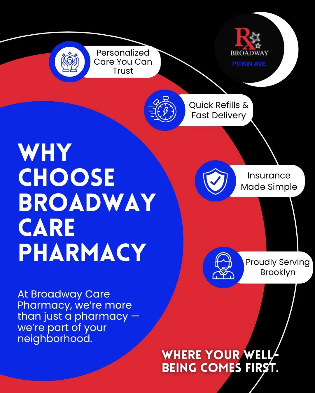 Our friendly team is dedicated to providing quick, helpful responses and making sure your experience with Broadway Pharmacy is smooth and stress-free. Let’s stay connected—your health is our priority.