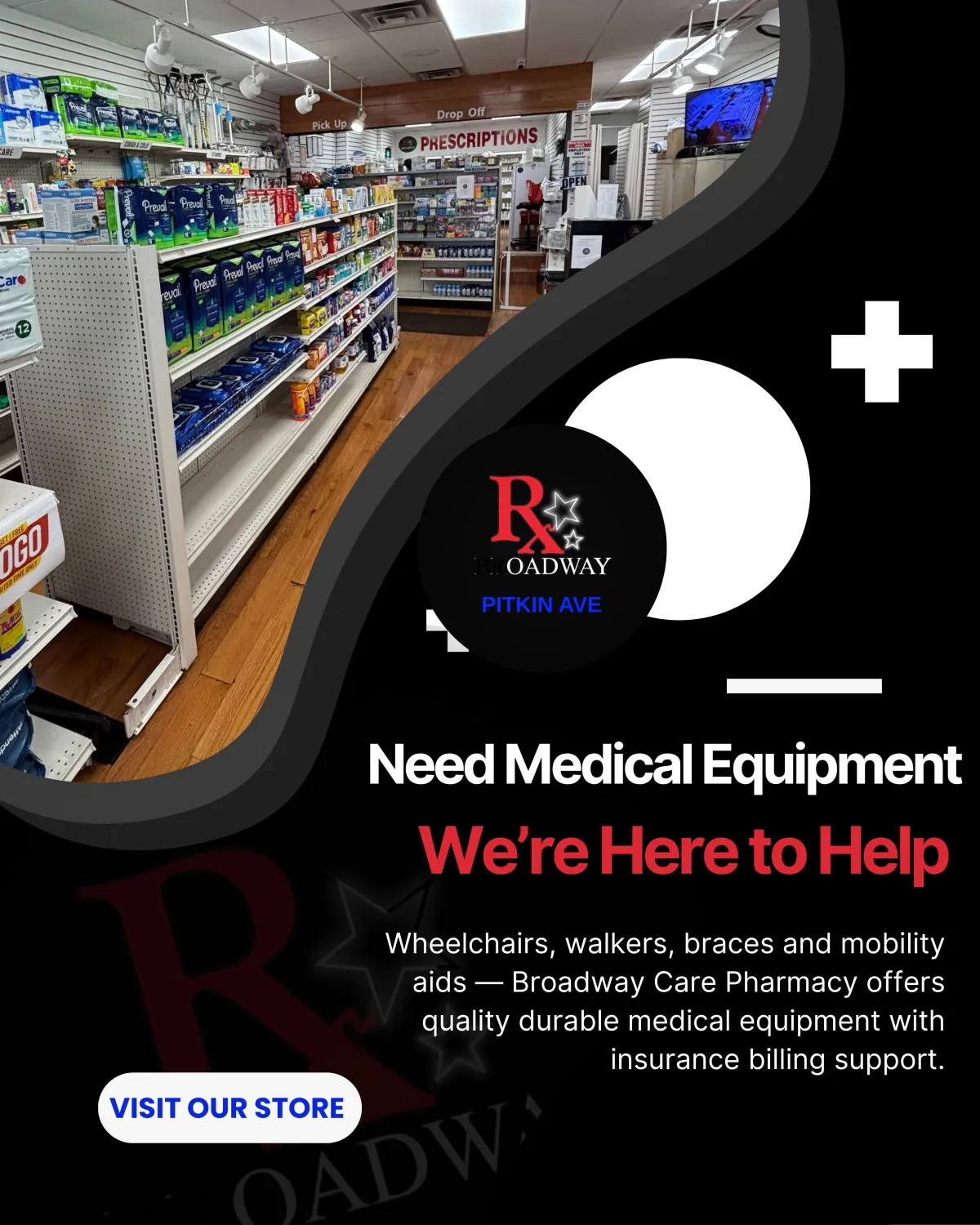 Looking for Durable Medical Equipment in Brooklyn? Broadway Pharmacy provides walkers, wheelchairs, braces, and mobility aids at our 1538 Pitkin Ave location. We assist with insurance billing and ensure you get the right equipment to support your health and mobility needs in Brownsville.