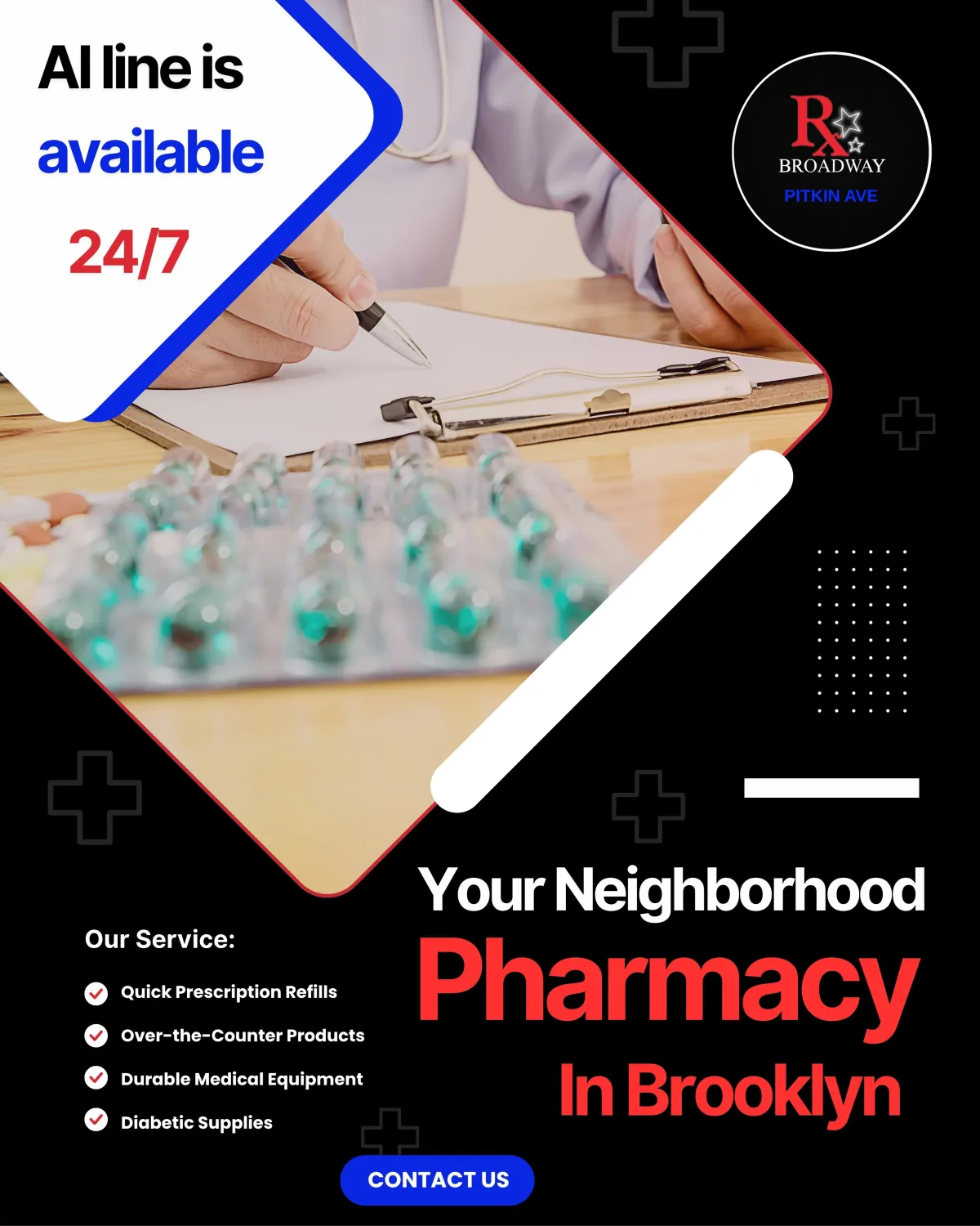 Located at 1538 Pitkin Ave in Brownsville, Brooklyn, Broadway Pharmacy offers fast prescription refills, over-the-counter medications, and expert pharmacist consultations. As a trusted Brooklyn pharmacy, we make it easy to manage your medications with personalized care in a convenient neighborhood location.